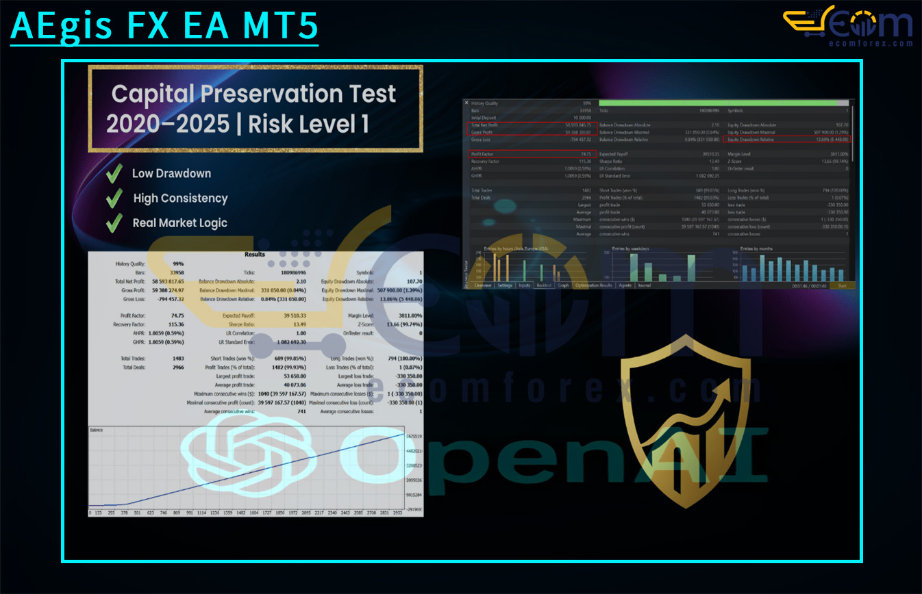 AEgis FX EA MT5 is a next-generation Expert Advisor built on a proprietary Dual-Phase Market Framework combined with a Capital Preservation Shield — an intelligent capital protection mechanism designed for professional traders.