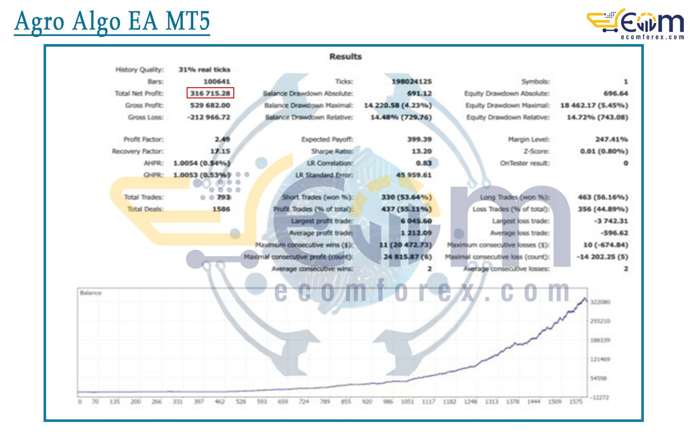 Agro Algo EA MT5 Backtests Result