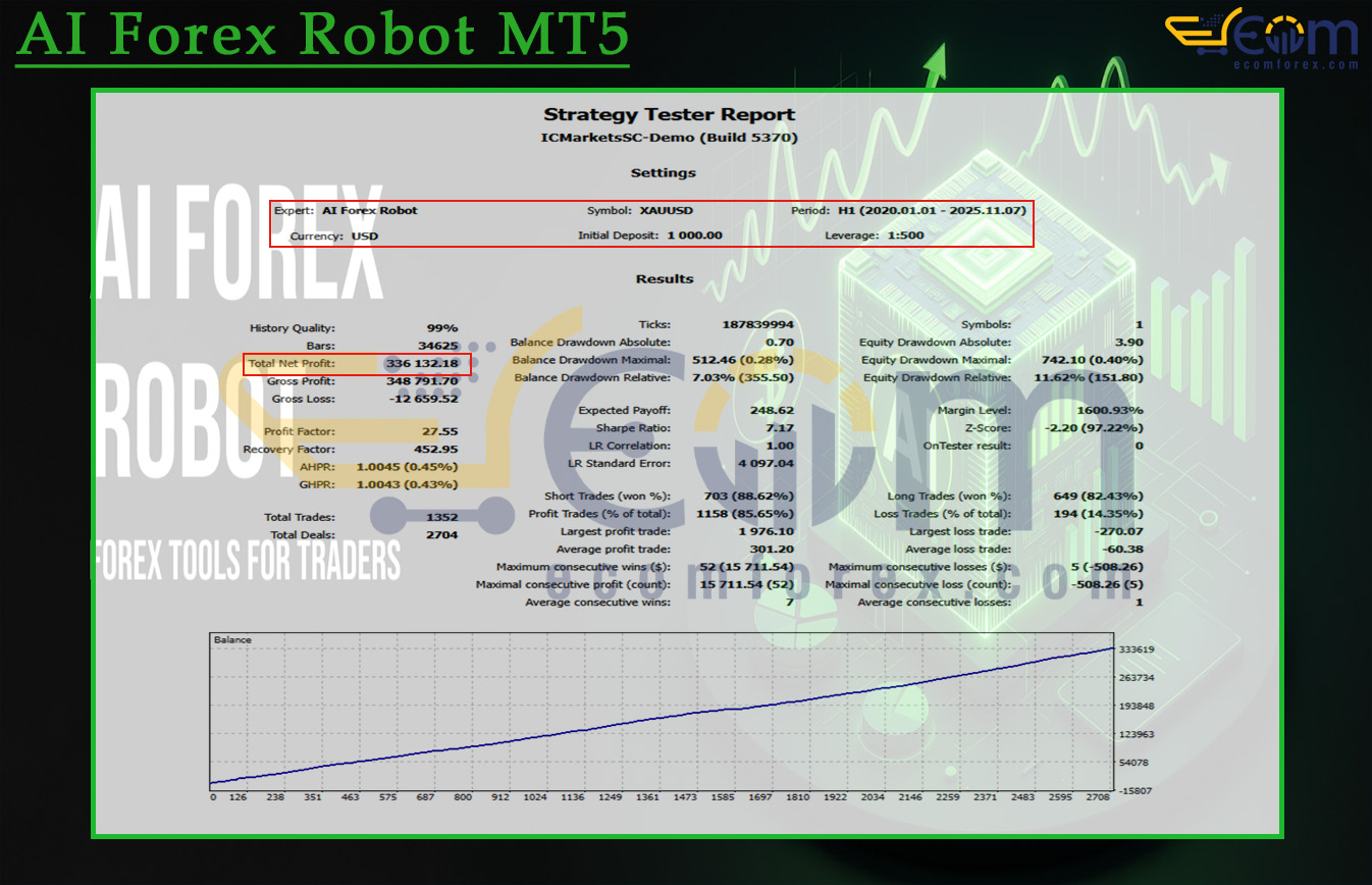 AI Forex Robot MT5 is specifically tuned for XAUUSD (Gold) on the H1 timeframe, designed around one guiding principle: