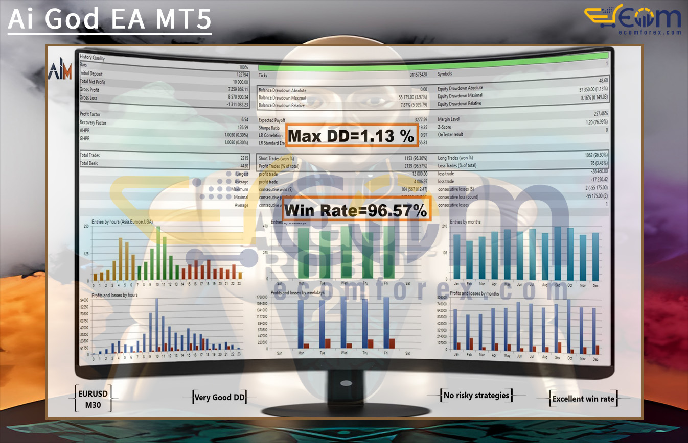 AI God EA MT5 has delivered exceptional performance in its backtesting phase, showcasing remarkable profitability, ultra-low drawdowns, and near-perfect trade accuracy.