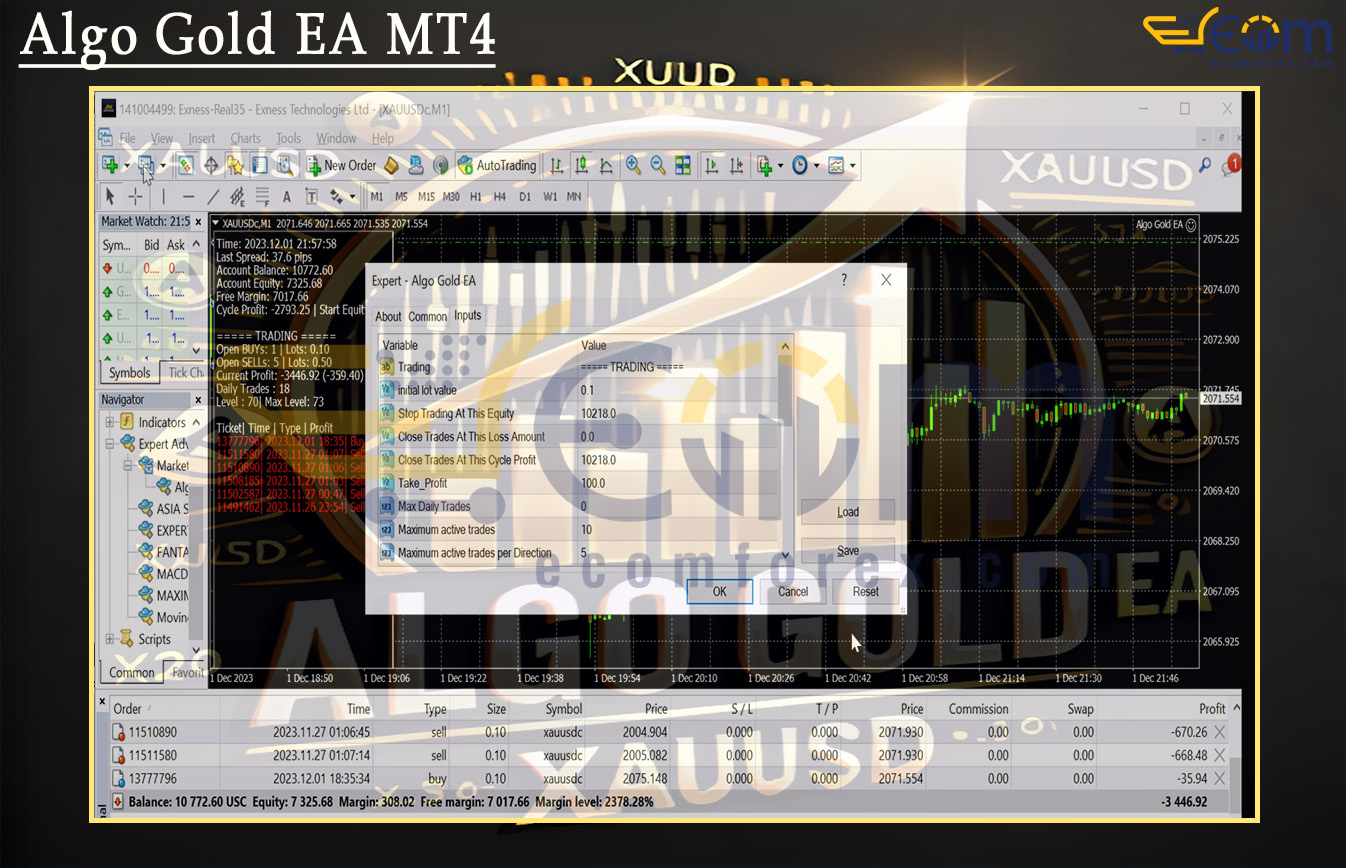 Algo Gold EA MT4 is a next-generation Expert Advisor (EA) engineered specifically for XAUUSD trading on MT4. With the perspective of a trader with 20 years of market experience, this EA stands out for its emphasis on capital safety, drawdown control, and cyclical profit optimization — perfectly suited for disciplined and long-term trading.