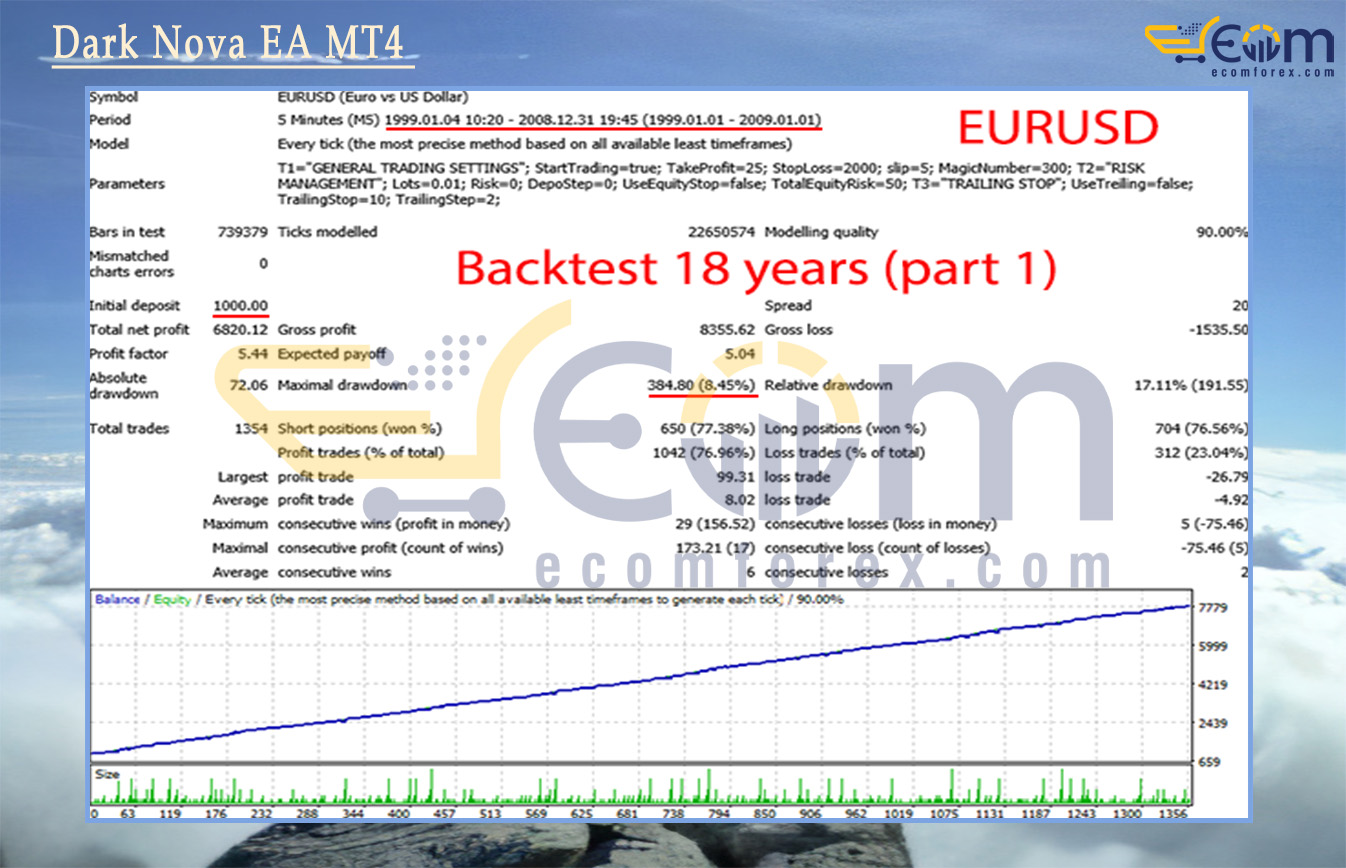 Over 18 years of rigorous backtesting on EURUSD, Alpinist EA has demonstrated outstanding profit performance and excellent risk control.