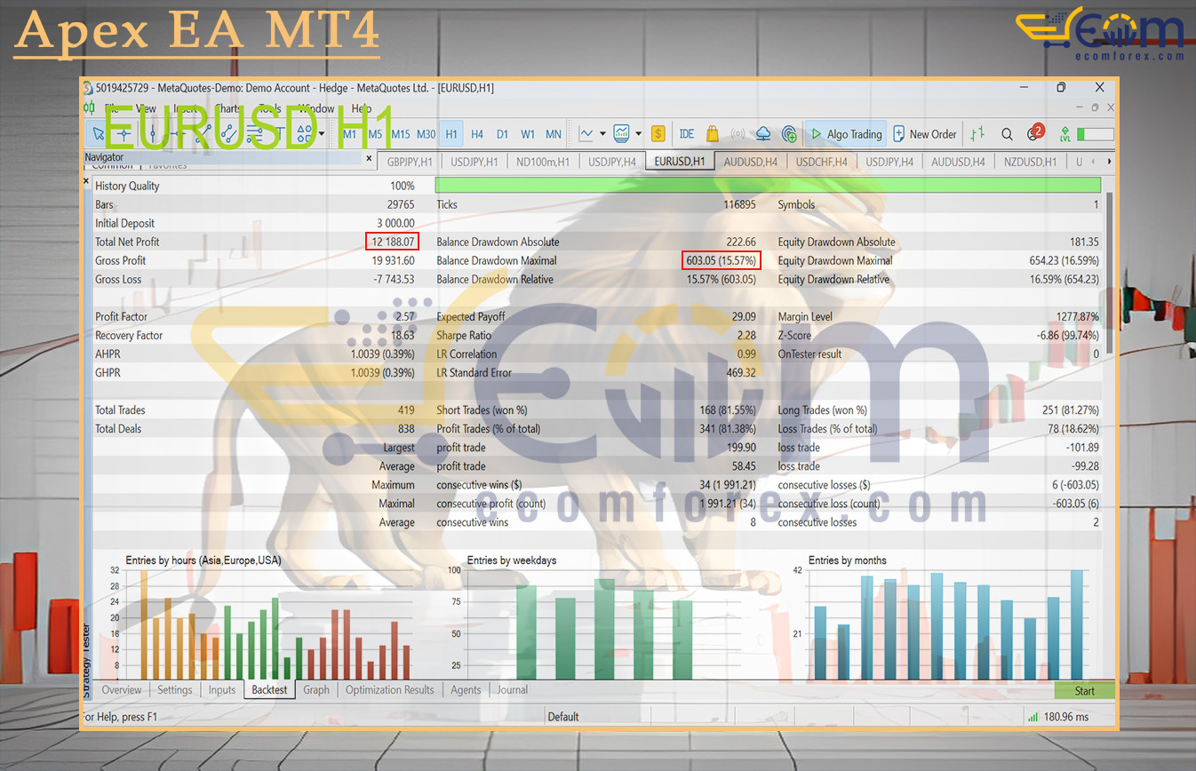 Apex EA (EURUSD H1) has demonstrated excellent profitability and consistent performance throughout its backtesting phase, confirming its ability to deliver stable results while maintaining disciplined risk control and capital preservation.