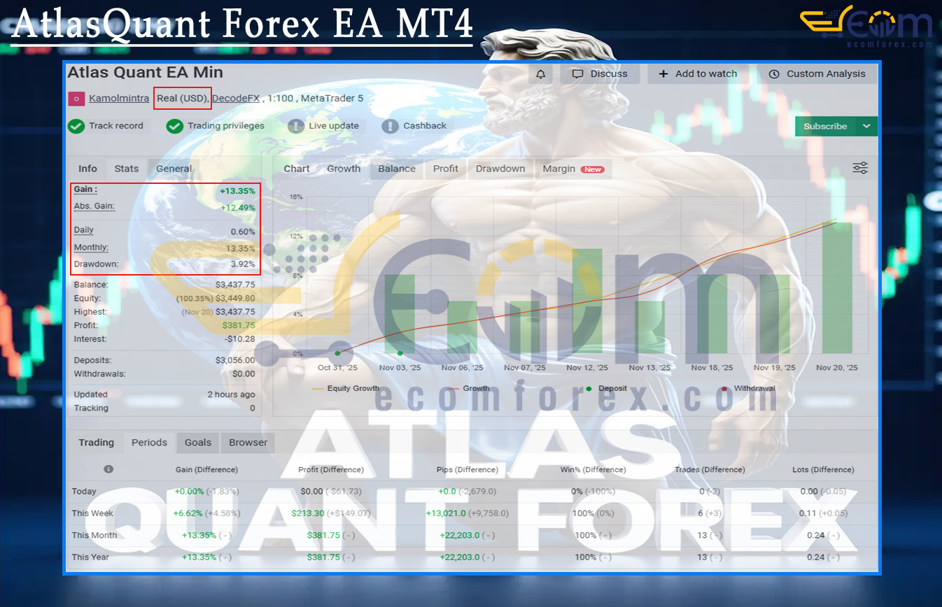 AtlasQuant Forex EA MT4 Live Result MyfxBooks