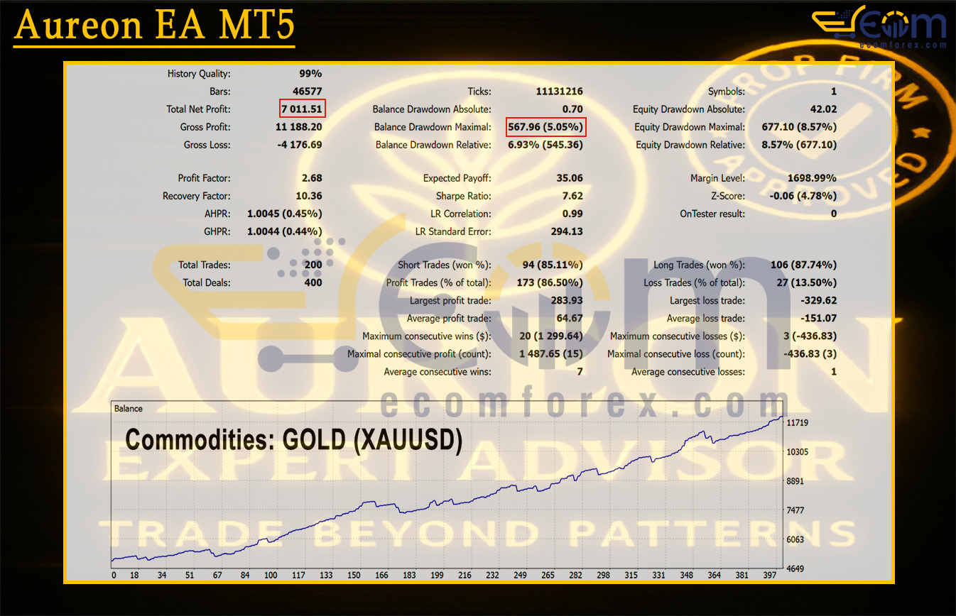 Aureon EA MT5 delivered strong and highly consistent profitability over this extended GOLD (XAUUSD) backtest, confirming the effectiveness of its professional divergence-based trading framework combined with strict risk control.