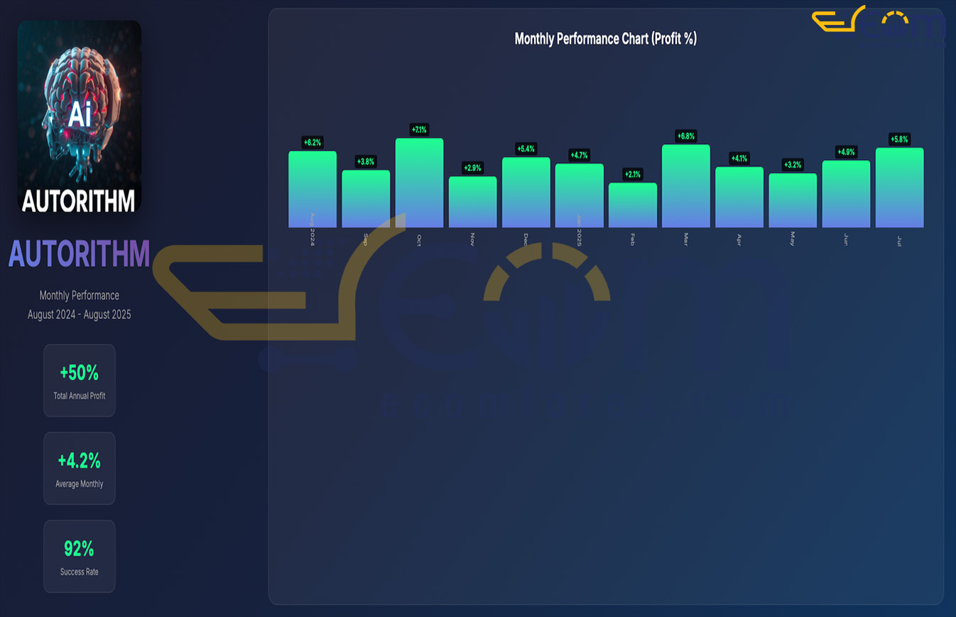 From August 2024 to August 2025, Autorithm AI EA delivered a remarkably strong performance, showcasing the precision and stability of its 10-layer intelligence engine.