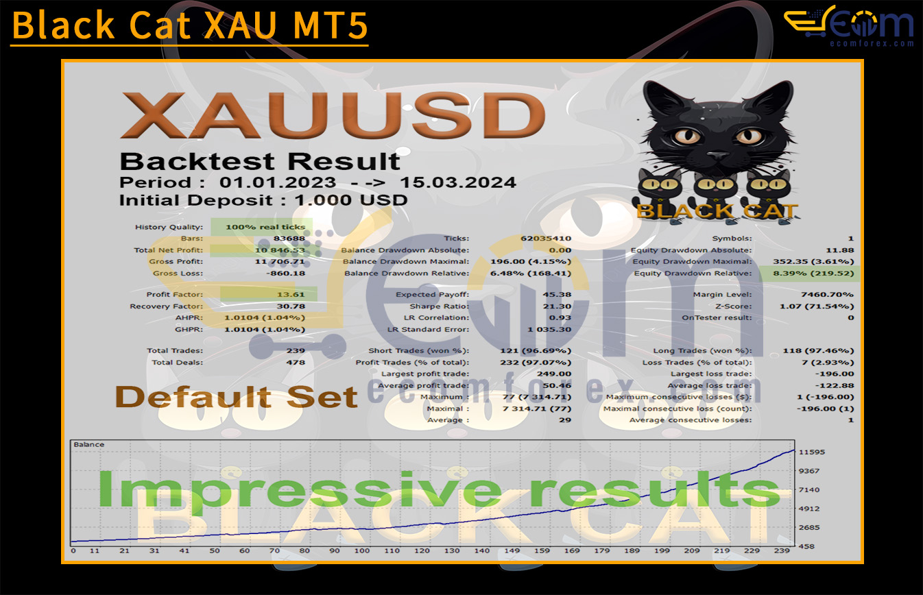 Black Cat XAU MT5 is a reliable tool for exploiting profit opportunities in the gold market, especially for traders seeking a combination of safety and sustainable growth in their portfolios.