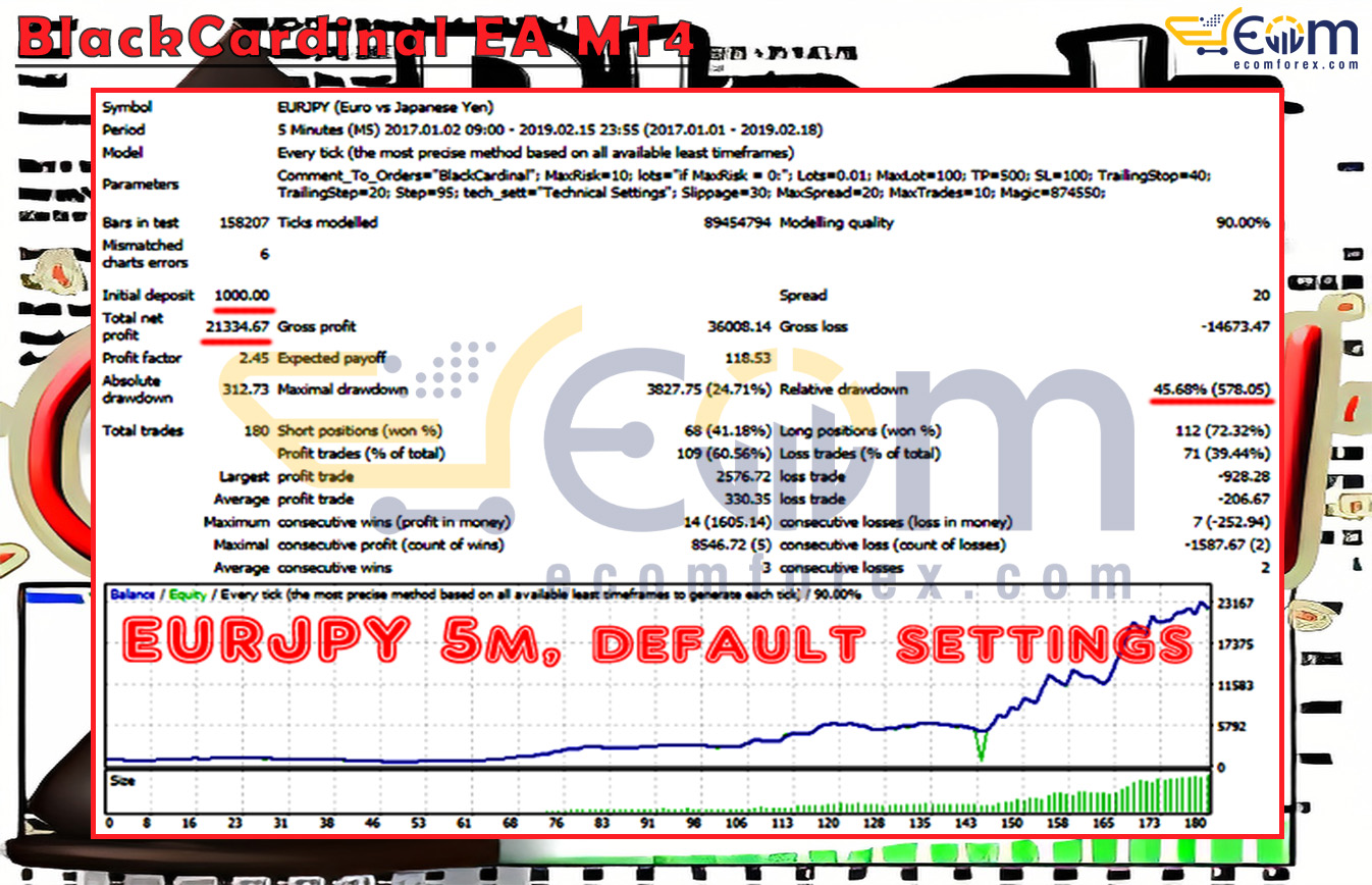 BlackCardinal EA MT4 has showcased strong profitability and consistent performance during its backtesting phase, validating its ability to identify and trade high-probability fractal formations with remarkable precision and timing.