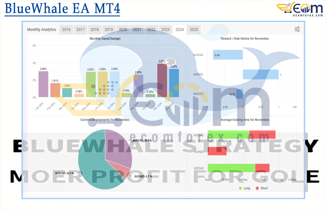 BlueWhale EA MT4 is a next-generation automated trading system engineered for traders seeking high return potential with strict drawdown control below 20%.