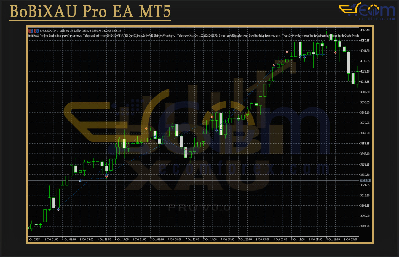 BobiXAU Pro EA MT5 is a specialized Expert Advisor (EA) that trades only XAUUSD, employing a cautious trend-following strategy with multi-timeframe confirmation. It leverages gold’s strong trending nature and high volatility, paired with institutional-grade risk management for consistent long-term performance.