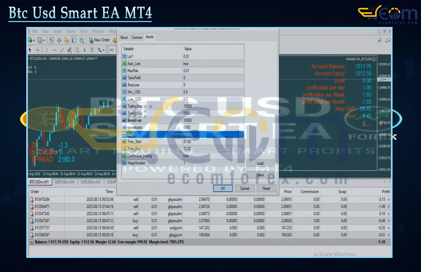 Btc Usd Smart EA MT4 – Latest original version | Unlimited