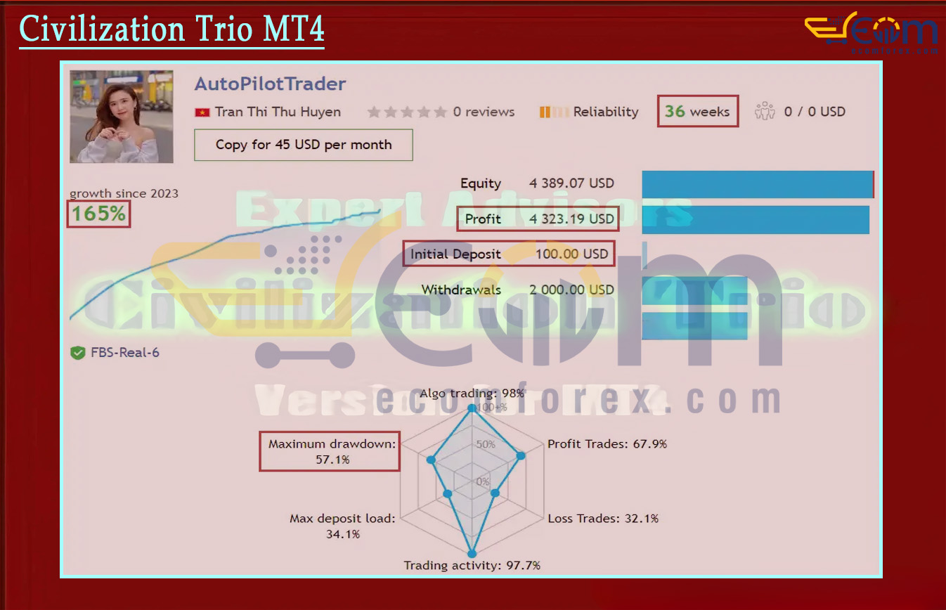 Civilization Trio MT4 (also known as Civilization Trio MT4) is a powerful high-frequency trading Expert Advisor (EA) built exclusively for MetaTrader 4 (MT4). It specializes in trading the EURUSD pair (primarily on the H1 timeframe), with some versions also supporting GBPUSD. This EA stands out for its ability to pass strict prop-firm challenges (such as FTMO, The Funded Trader, etc.) thanks to its consistent performance, low-to-moderate drawdown, and robust risk management — making it a favorite among traders aiming for funded accounts.