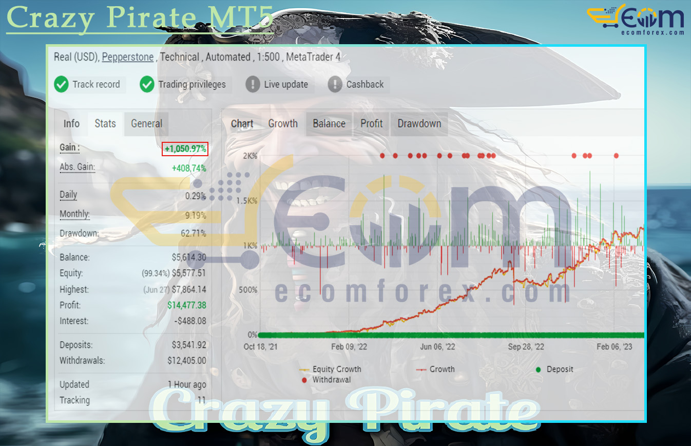 Crazy Pirate MT5 is an Expert Advisor (EA) built for the MetaTrader 5 platform — a fearless yet disciplined “market adventurer” that brings clarity and simplicity back to forex trading.