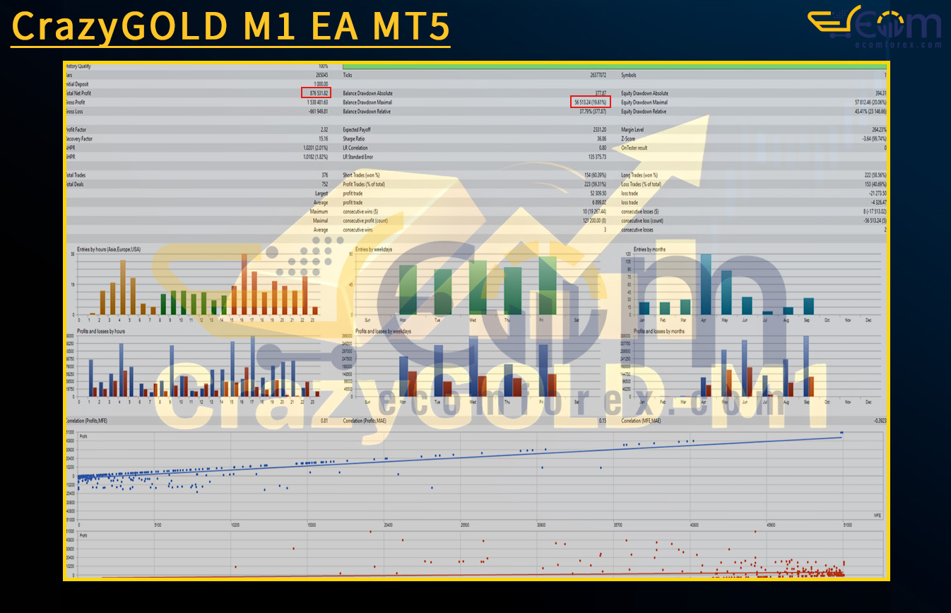 CrazyGOLD M1 EA MT5 is a fully automated trading system designed specifically for XAUUSD (Gold).