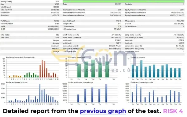 • Trustworthy backtest data since 1999: EA performance has been validated over an extended timeframe with high-quality data (99.9% quote quality).