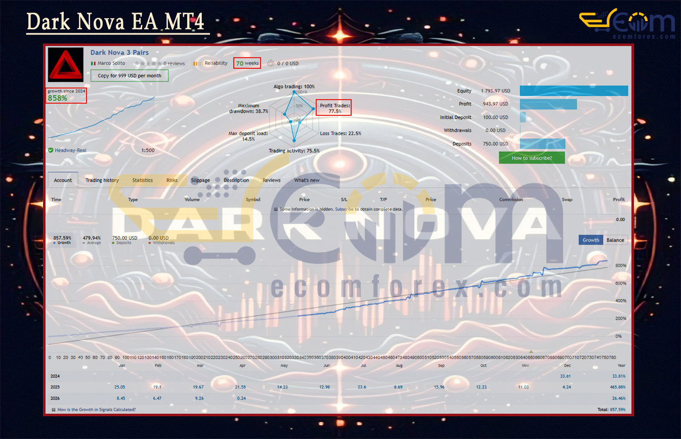 Designed for consistent performance in various market conditions, Dark Nova EA focuses on high-quality signals while maintaining strict capital protection.