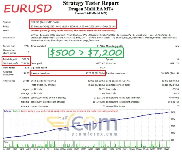 Dragon Multi EA MT4 is the most sophisticated trading instrument available on the MetaTrader 4 (MT4) platform. Merging three experts into a single expert aids transactions in achieving heightened efficiency. The EA employs price action based methodologies and maintains consistent results even while trading with PropFirms firms.