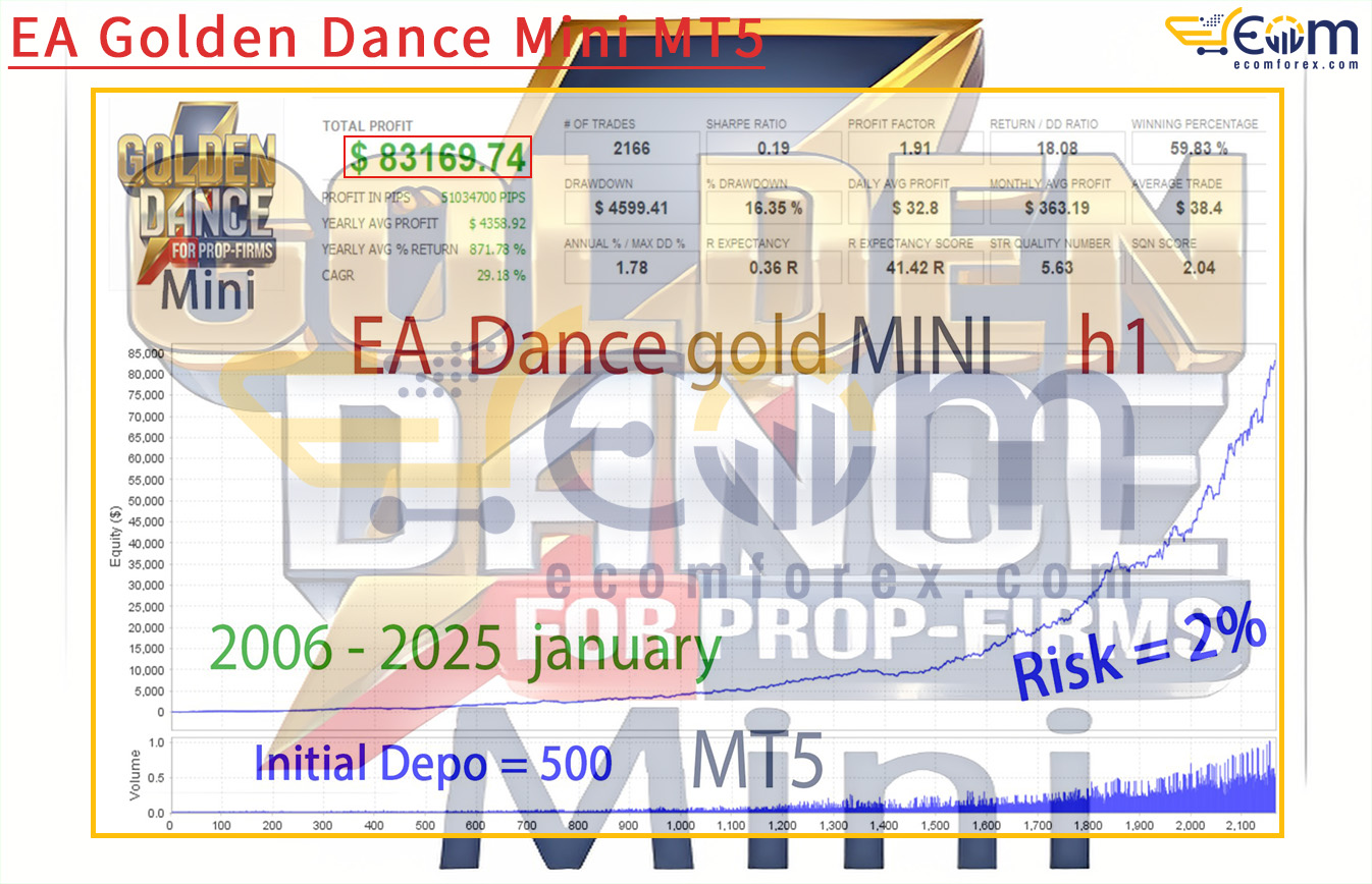 EA Golden Dance Mini has demonstrated strong and consistent results in backtesting, proving its ability to deliver high profitability with disciplined risk management over a long-term period (2006–2025). The system shows a reliable balance between aggressive growth and controlled drawdowns, making it an excellent choice for traders aiming to maximize returns on gold trading strategies.