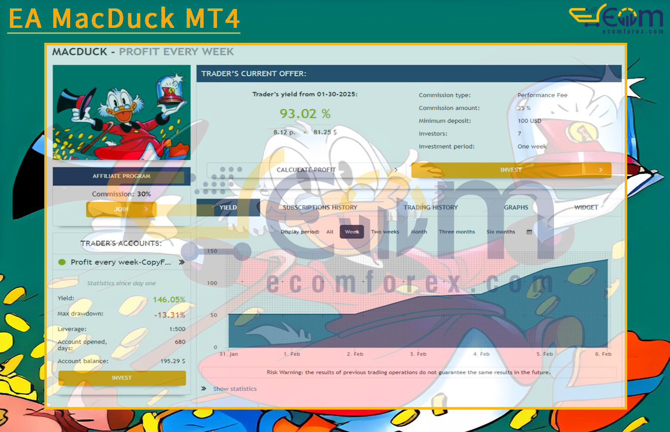 With a minimum starting capital of $1,000 and leverage from 1:20, MacDuck EA is accessible even for traders with modest account sizes, providing professional-grade performance without high entry costs.