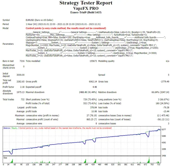 EA VAPZFX PRO MT4 is a sophisticated trading instrument suitable for all traders. This EA works seamlessly with the MetaTrader 4 (MT4) platform and is capable of trading across all currency pairs and time frames (particularly effective on the H1 time frame).