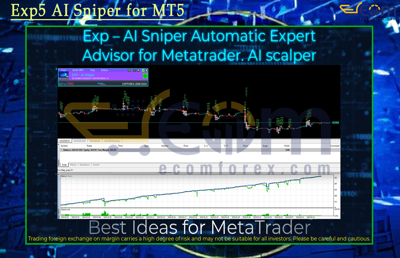 Exp5 AI Sniper for MT5 is a next-generation, fully automated Expert Advisor (EA) engineered for MetaTrader 5, combining cutting-edge computational intelligence with rock-solid risk discipline. This EA doesn’t chase noisy signals or gamble on high-frequency chaos — instead, it acts like a precision sniper: patient, calculated, and lethal only when the setup is crystal clear.