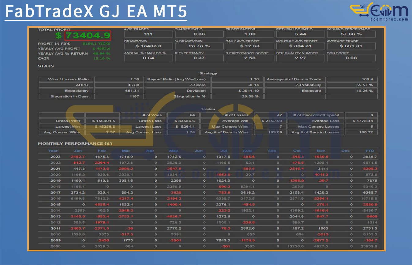 FabTradeX GJ EA MT5 is an Expert Advisor (EA) designed exclusively for the GBPJPY pair, built upon the inherent dynamics of the forex market rather than short-lived overfitted models. For more than a decade, this EA has consistently demonstrated stability, adapting to market rhythm while maintaining superior performance.