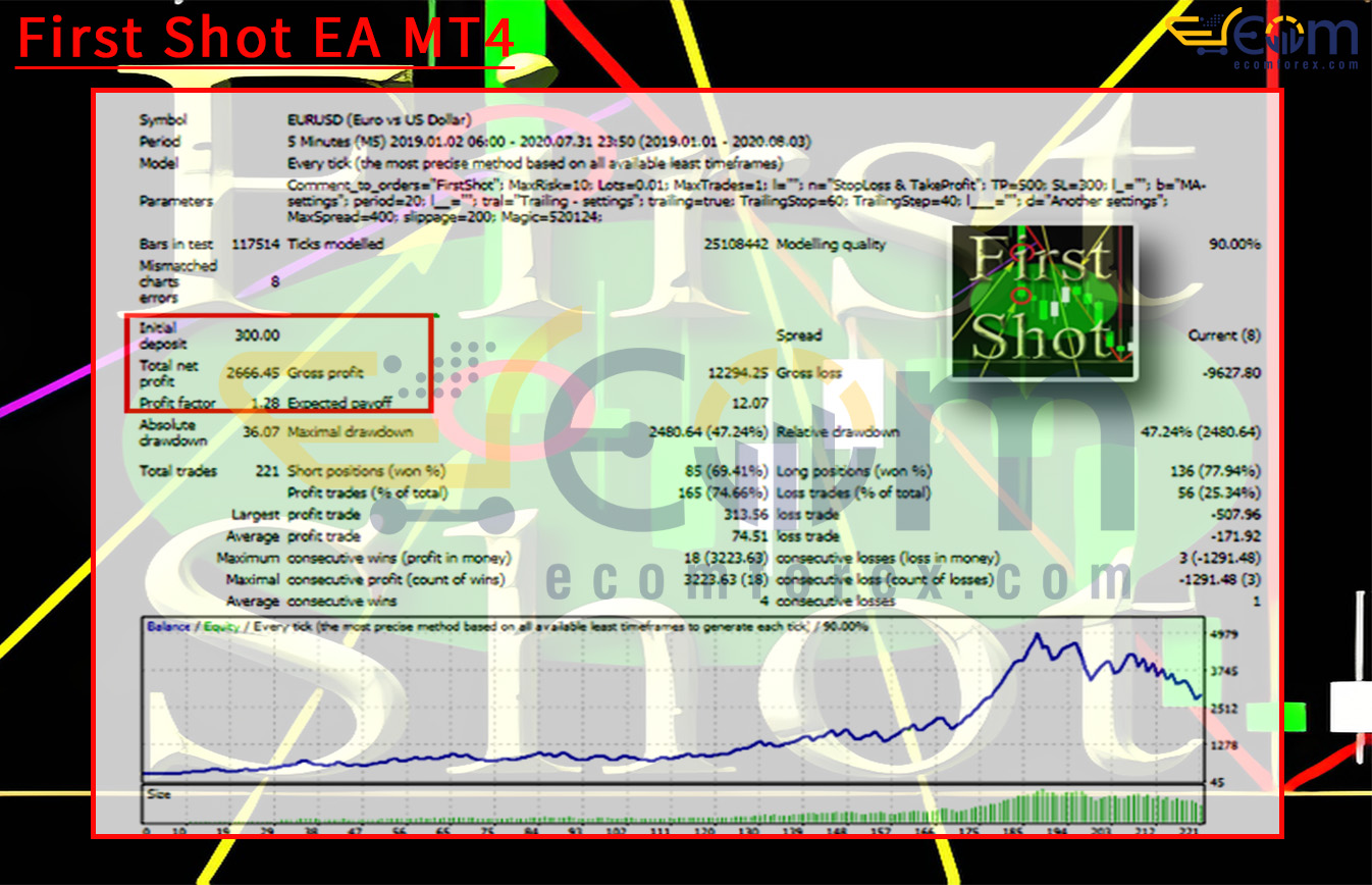 First Shot EA MT4 Backtests Result