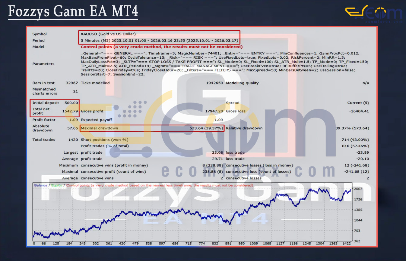 Fozzys Gann EA continues to demonstrate powerful, consistent performance in rigorous backtesting.