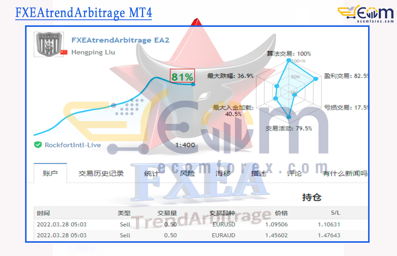 FXEAtrendArbitrage MT4 Review Core Features of FXEAtrendArbitrage MT4 Trend-Arbitrage Hybrid System : Smartly combines trend-following and arbitrage strategies to capture multiple types of market opportunities.High-Speed Execution : Processes signals with millisecond precision for fast and accurate trade entries.Statistical Market Analysis : Utilizes advanced distribution algorithms and historical data modeling to make intelligent trading decisions.Flexible Trading Modes : Supports both fully automated and manual trading for maximum control and adaptability.Broad Broker Compatibility : Works smoothly across different brokers with low sensitivity to spreads and execution quality.FXEAtrendArbitrage MT4 Trading Strategy FXEAtrendArbitrage MT4 employs a smart, data-driven approach: