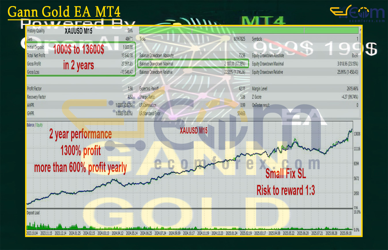 Over many years of rigorous reversion and historical backtesting on the XAUUSD (Gold) pair, Gann Gold EA MT4 has consistently showcased robust profitability and market mastery. The system excels at navigating gold’s volatile cycles, capturing high-conviction Gann-based setups while delivering impressive compounded growth with disciplined risk control.