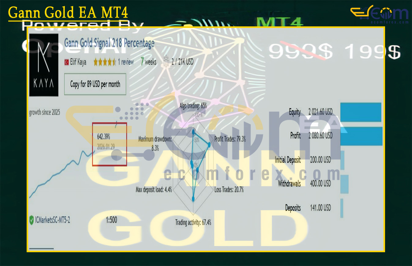 Gann Gold EA MT4 is a powerful automated trading robot (Expert Advisor) specifically engineered for XAUUSD (Gold) on the MetaTrader 4 (MT4) platform. It combines classic W.D. Gann pattern analysis with modern AI-enhanced filters to detect high-probability breakouts, trend continuations, and volatility-driven moves in the gold market. The EA emphasizes disciplined entries, fixed risk-reward ratios, and strict capital protection — avoiding dangerous techniques like Martingale or Grid.