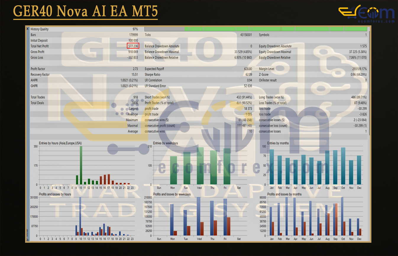 GER40 Nova AI EA MT5 is a cutting-edge, fully autonomous MT5 Expert Advisor (EA) developed exclusively for trading the GER40 (DAX40) index — Germany’s premier blue-chip benchmark known for its high volatility, strong trends, and explosive intraday moves.