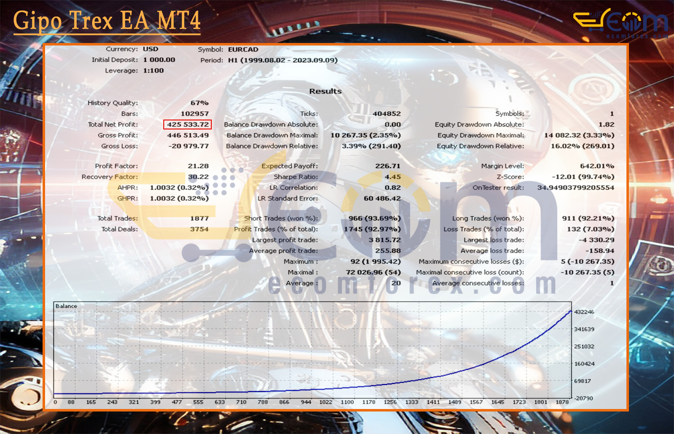 Gipo Trex EA has produced one of the most extraordinary long-term simulation results ever documented for a trailing-stop volatility system — delivering exceptional compounded growth over a full 30-year historical period on the EURGBP pair.