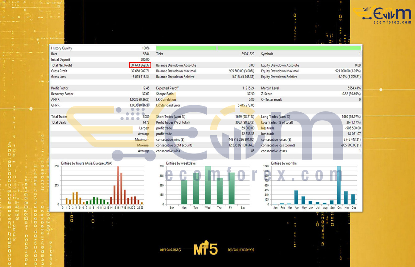 Gold Integrity EA has demonstrated outstanding long-term profitability and exceptional stability throughout an extensive backtest on the XAUUSD pair.