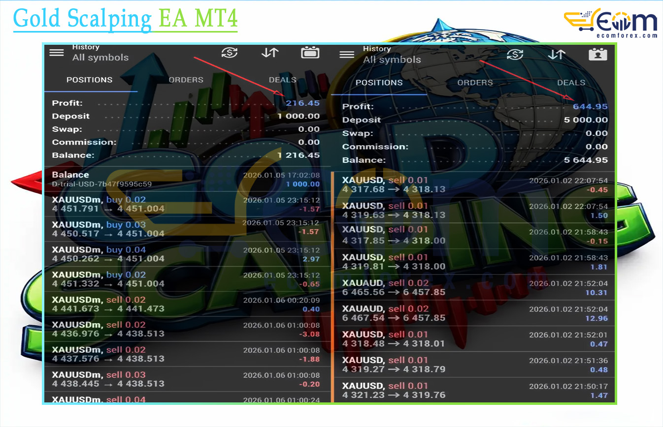 Gold Scalping EA MT4 is a high-frequency scalping Expert Advisor (EA) built exclusively for trading XAUUSD (Gold) on the MetaTrader 4 (MT4) platform. It fully automates the trading process, leveraging ultra-fast order execution and technical analysis to capture frequent, short-term price fluctuations in the highly volatile gold market.