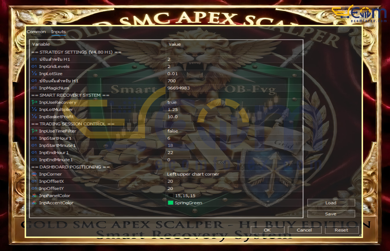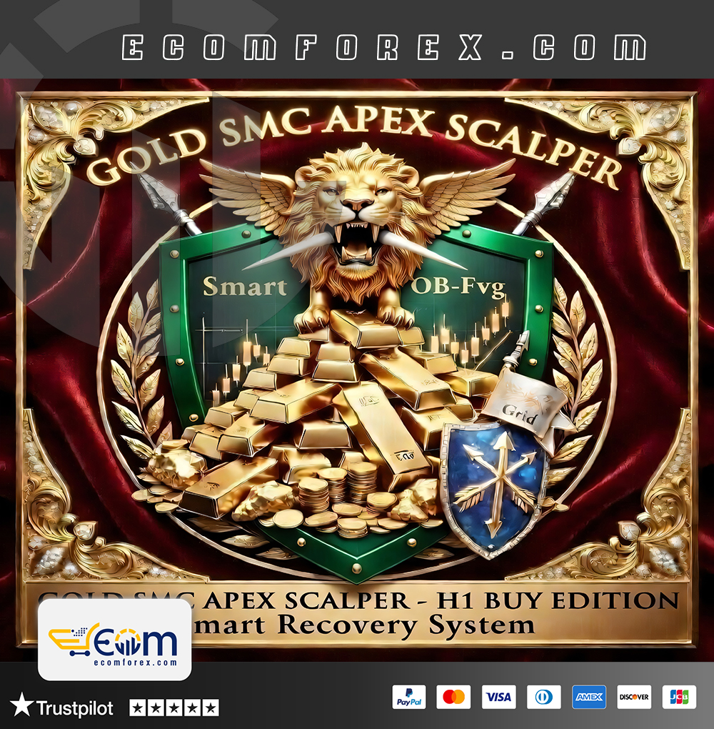 Gold Smc Apex Scalping MT5 is a powerful hybrid Expert Advisor (EA) specifically designed for trading XAUUSD (Gold) on the H1 (1-hour) timeframe. It combines professional Smart Money Concepts (SMC) for precise entry zones with a strategic Grid and Martingale recovery system.