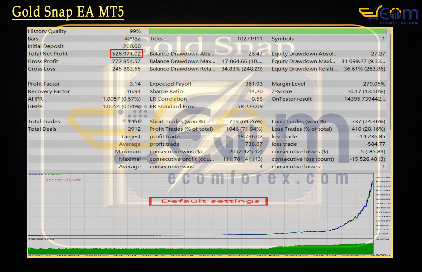 Gold Snap EA has demonstrated outstanding consistency and profitability through extensive backtesting over many years on XAUUSD (Gold).