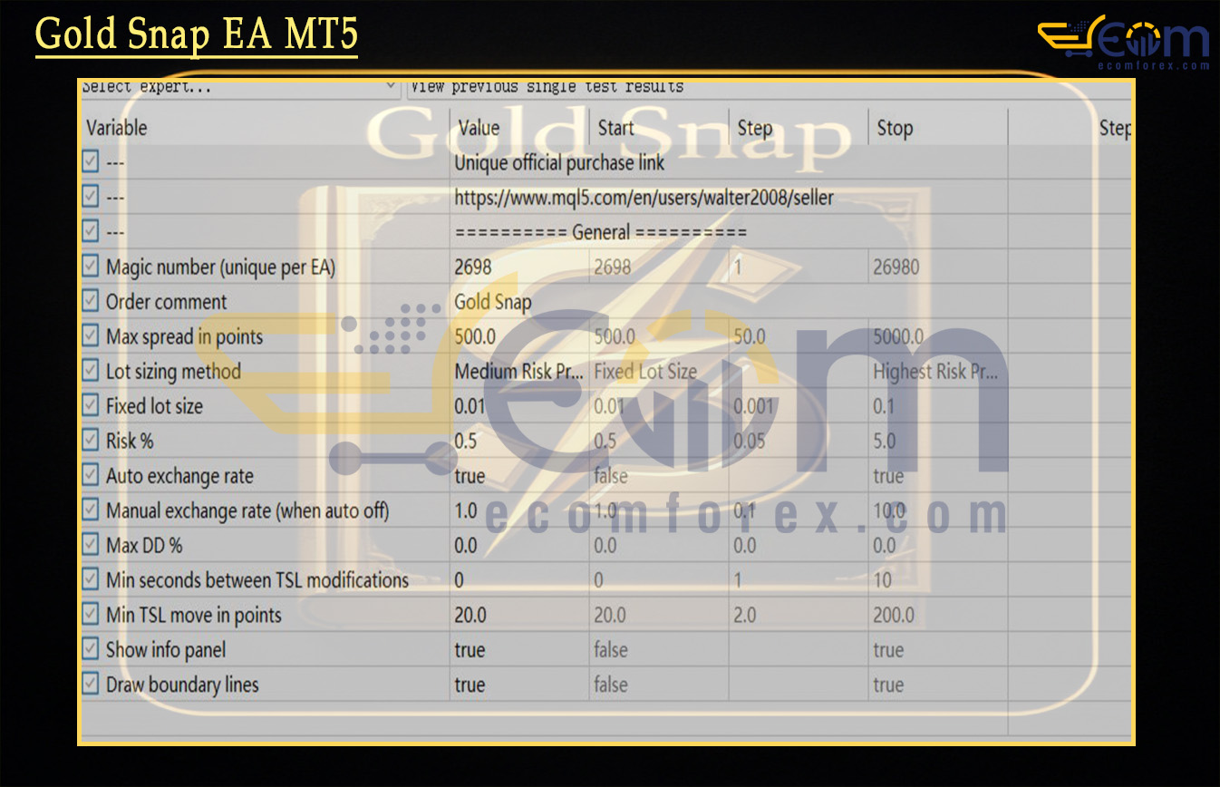 Name: Gold Snap EA MT5