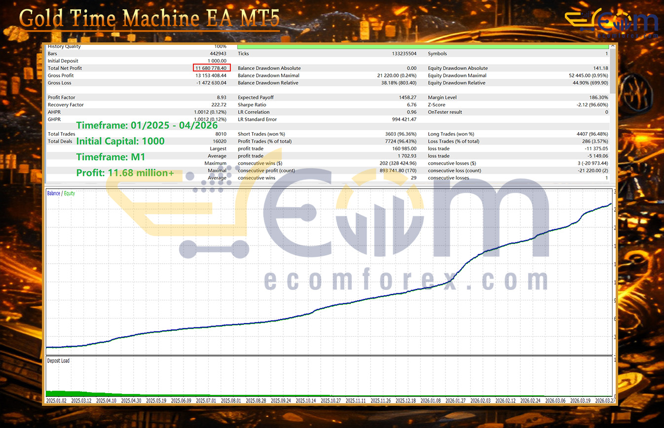 Gold Time Machine EA has delivered exceptional long-term results through comprehensive 16-month backtesting on XAUUSD (Gold).