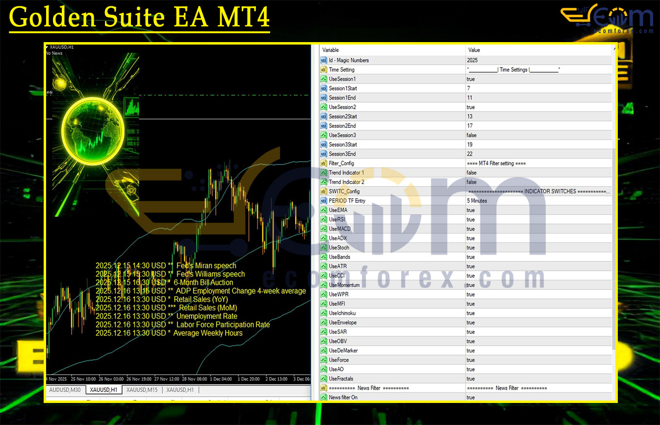 Golden Suite is an innovative gold trading Expert Advisor (EA) (XAUUSD) that combines proven trading rules with advanced data-driven algorithms.