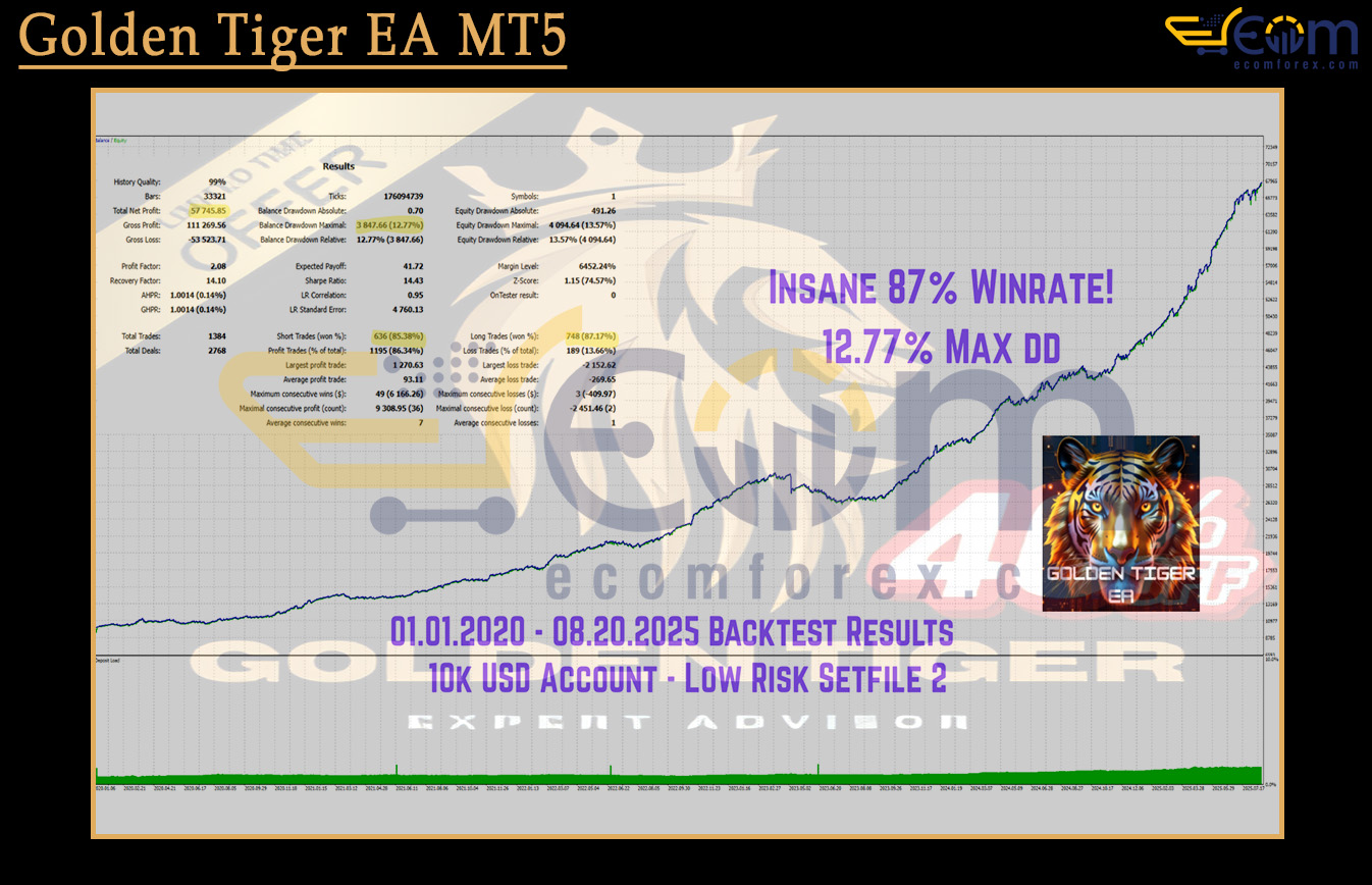 After more than 20 years dedicated to trading gold (XAUUSD), I’ve backtested and run countless EAs live, but I have to admit: Golden Tiger EA is in a league of its own when it comes to sustainable profitability. This isn’t the kind of “flash-in-the-pan” explosive gains that vanish overnight – it’s steady, powerful, and remarkably safe growth, like a true professional “golden tiger” stalking the volatile gold market with precision.