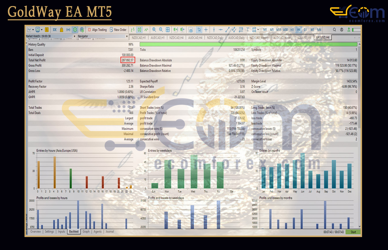 GoldWay EA MT5 is a clean, non-martingale/non-grid trending Expert Advisor (EA) designed for safe, high-quality trades on volatile assets like Gold (XAUUSD), Bitcoin (BTCUSD), and other instruments. It uses smart lot progression + multi-take-profit logic to capture trends while protecting capital aggressively. Optimized primarily for XAUUSD on H4 timeframe, it trades infrequently but with high conviction — perfect for patient traders who value drawdown control over frequent action.