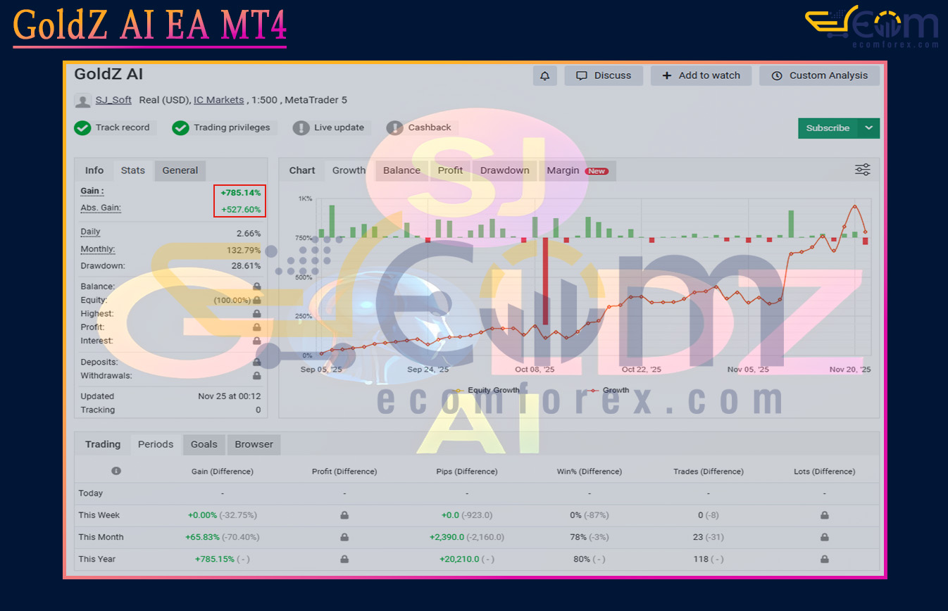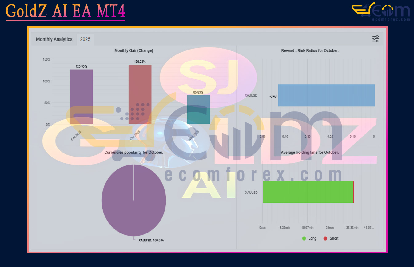 GoldZ AI EA MT4 has demonstrated strong, verified long-term profitability on MyFxBook, delivering exceptional returns and showcasing its robust capability in trading XAUUSD (Gold).