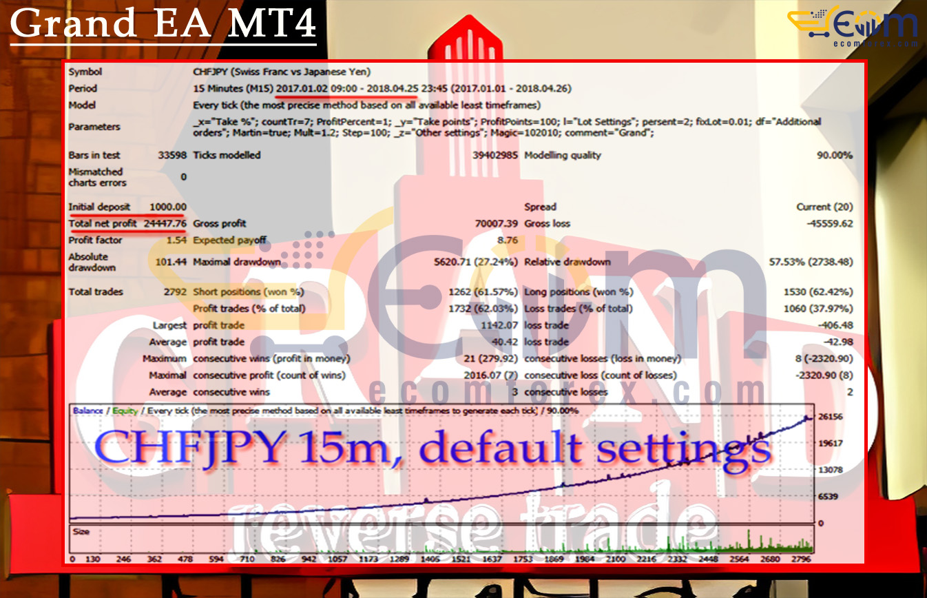 Grand EA MT4 is a fully automated trading system designed exclusively for the CHFJPY pair on the M15 timeframe. It has showcased verified performance under real market conditions, delivering consistent profitability with adaptive trend and risk management.