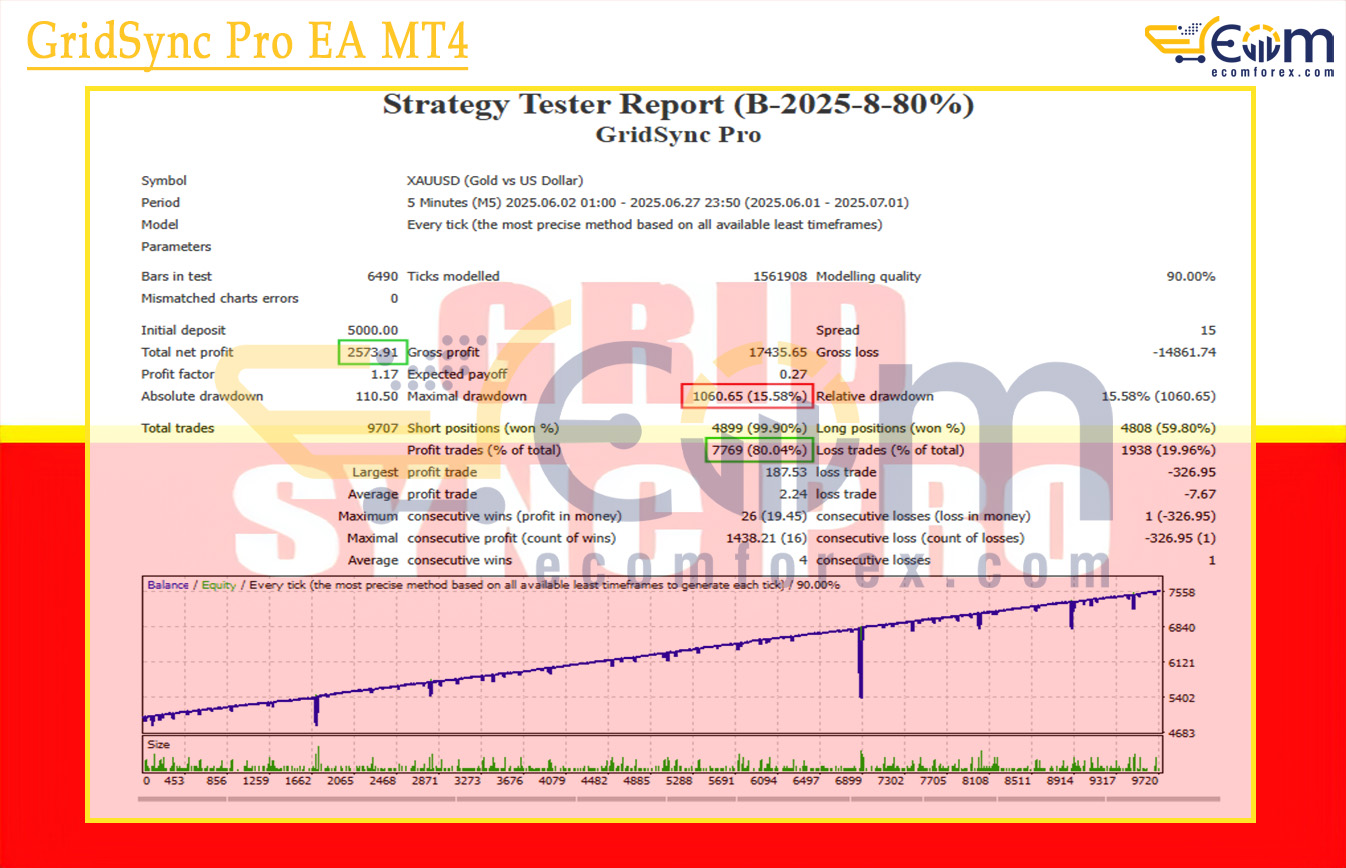 GridSync Pro EA has consistently demonstrated strong, reliable results through extensive multi-year reversion testing and historical simulations — particularly on XAUUSD (Gold), one of the most volatile and opportunity-rich instruments. This advanced, non-Martingale grid system excels at capturing structured price movements while enforcing disciplined risk controls, turning disciplined grid logic into measurable, sustainable capital growth.