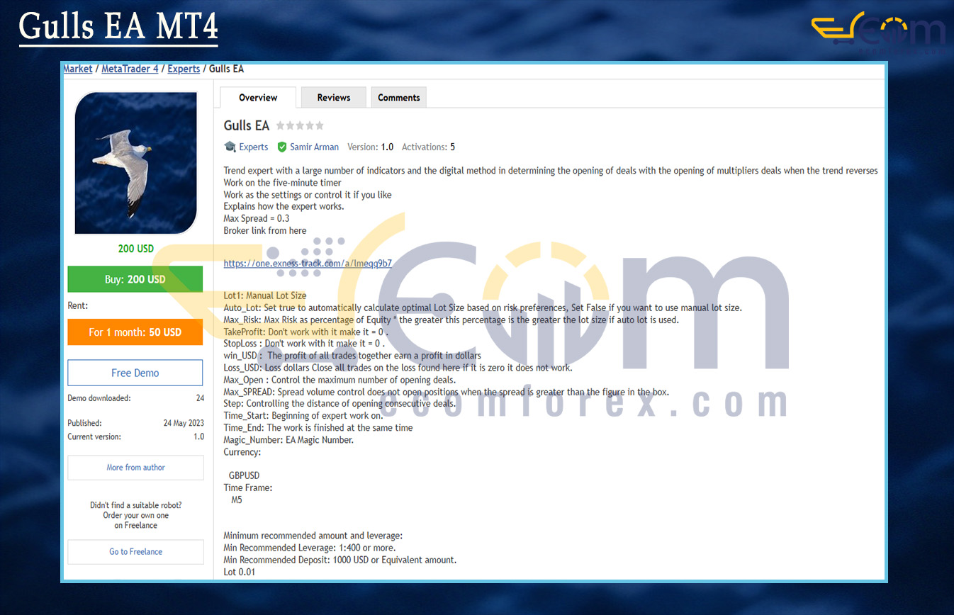 Name: Gulls EA Version: Latest Version Developer by: Samir Arman The Right Platform: Meta Trader 4 (MT4) Our Telegram Team: Join now Our Youtube Channel: Click here