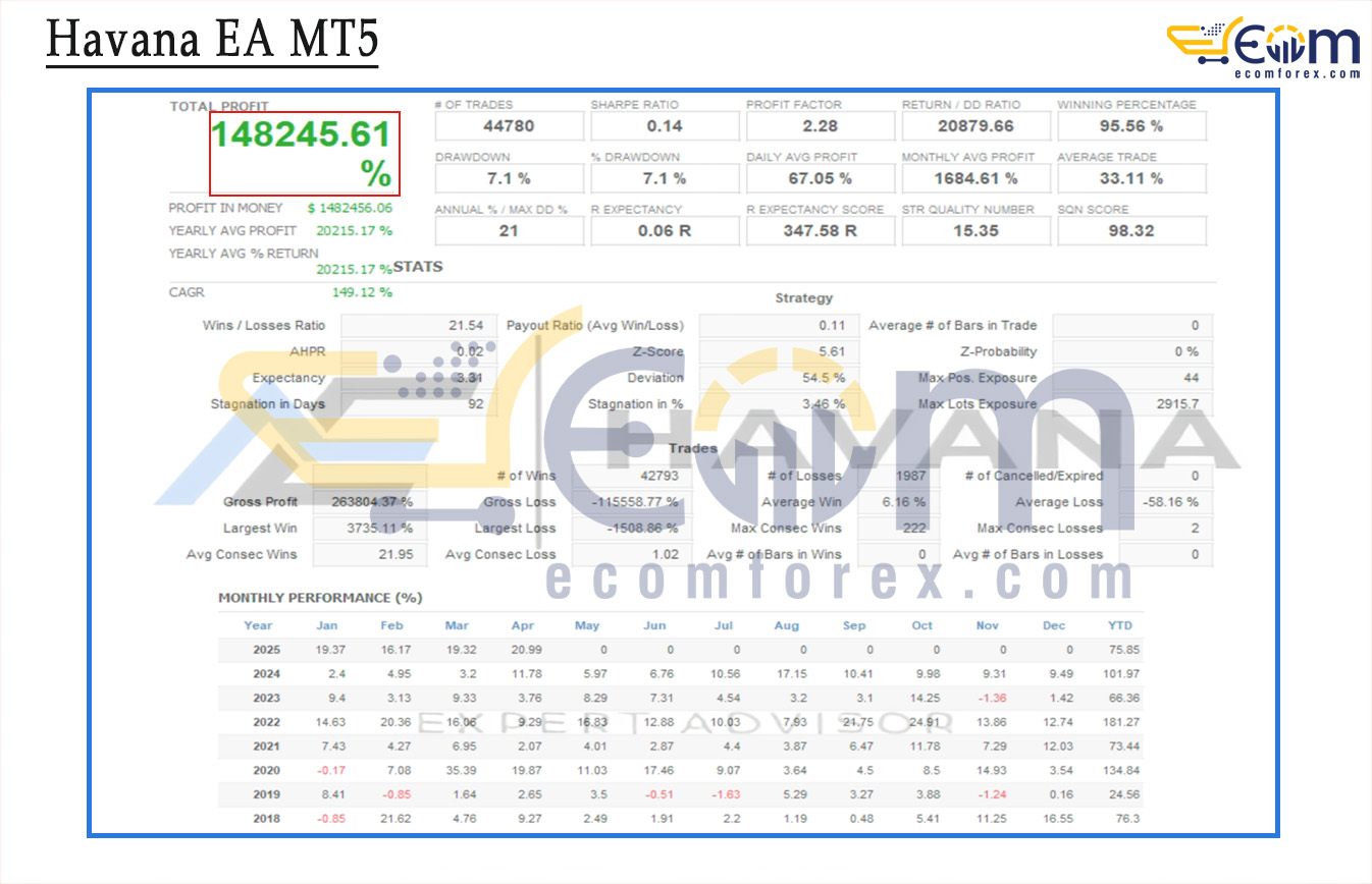 Across extensive multi-year reversion trading tests on US30 (Dow Jones), Havana EA has delivered truly elite-level performance. This M5 breakout-pullback MT5 Expert Advisor showcases remarkable precision and market mastery, generating explosive yet extremely controlled compounding on one of the most volatile indices.