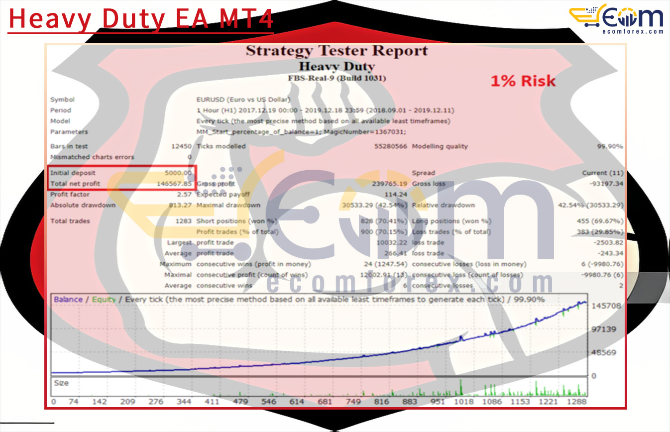 Optimized specifically for the EUR/USD pair on the H1 timeframe, Heavy Duty EA MT4 has been backtested with 99.9% real tick data, ensuring high accuracy, realistic simulation, and reliability across multiple market conditions.