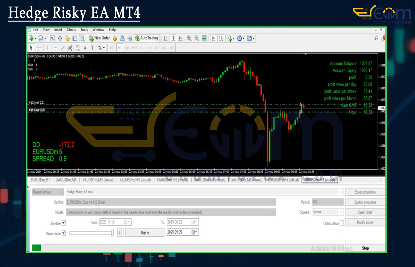 With more than 20 years of experience trading forex and commodities — including surviving gold’s massive swings during crises, inflation surges, and safe-haven flows — I know that pure directional trading often gets whipsawed in volatile instruments like XAUUSD. Hedge Risky EA MT4 is a professional-grade, fully automated Expert Advisor (EA) for MetaTrader 4 (MT4), specifically engineered for bidirectional hedging on XAUUSD (Gold) using a smart averaging and multiplier recovery system.