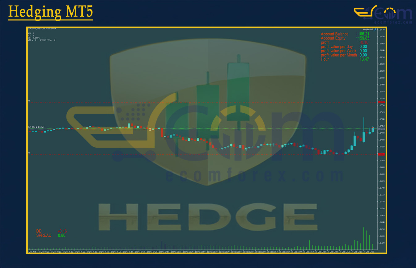 Hedging MT5 is fully automated MetaTrader 5 (MT5) Expert Advisor (EA) combines a set of oscillators (likely including RSI, Stochastic, CCI, or similar momentum tools) for signal generation, with a sophisticated profit tracking + cooling deals mechanism. Unlike pure grid or martingale EAs, it opens additional “cooling” (recovery/hedging-style) positions in the losing direction at controlled distances, then closes ALL open trades together once the basket reaches overall profit — a powerful collective closure method that locks in net gains efficiently.